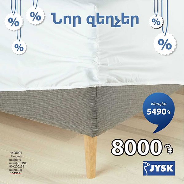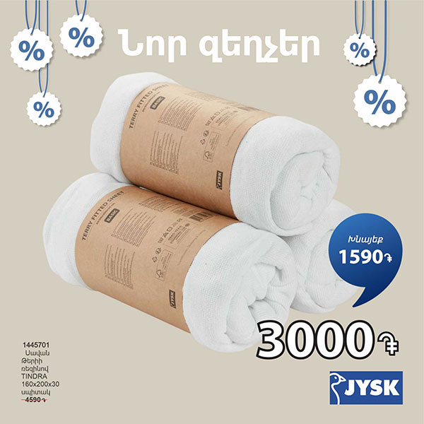 Սավան Թերիի ռեզինով TINDRA 160x200x30 սպիտակ