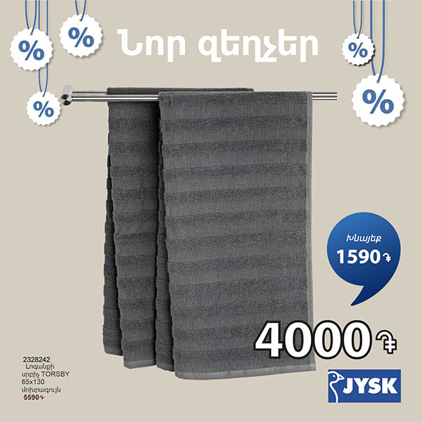 Լոգանքի սրբիչ TORSBY 65x130 մոխրագույն