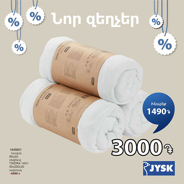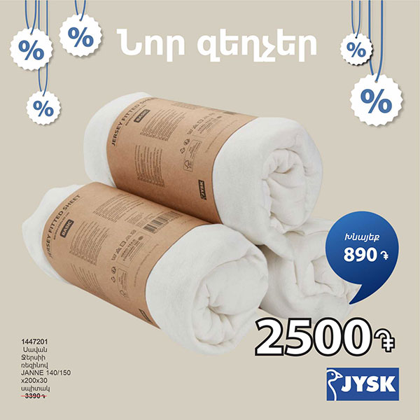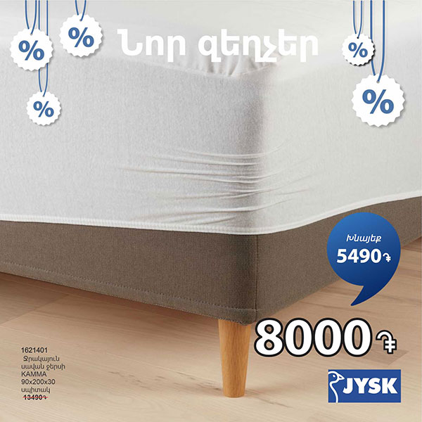 Սավան Ջերսիի ռեզինով JANNE 140/150x200x30 սպիտակ