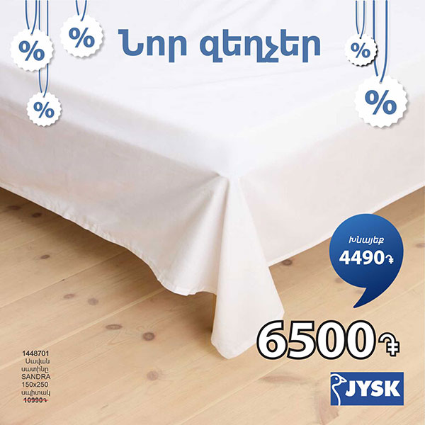 Սավան սատինը SANDRA 150x250 սպիտակ