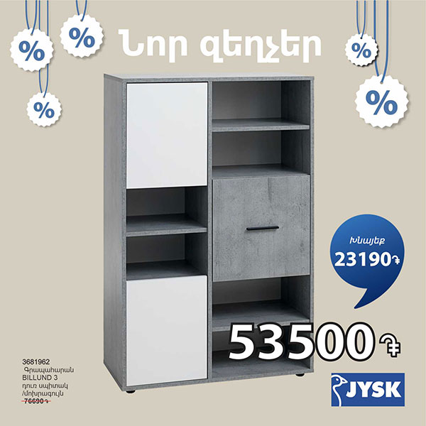 Գրապահարան BILLUND 3 դուռ սպիտակ/մոխրագույն