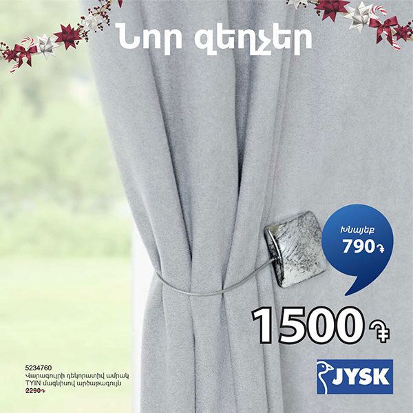 Վարագույրի դեկորատիվ ամրակ TYIN մագնիսով, արծաթագույն