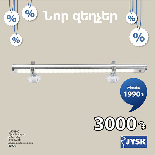 Դիմահարդարման լամպ LED KALIX L30cm արծաթագույն