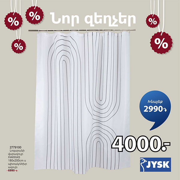Լոգարանի վարագույր HAKKAS 180x200cm սպիտակ/մոխրագույն