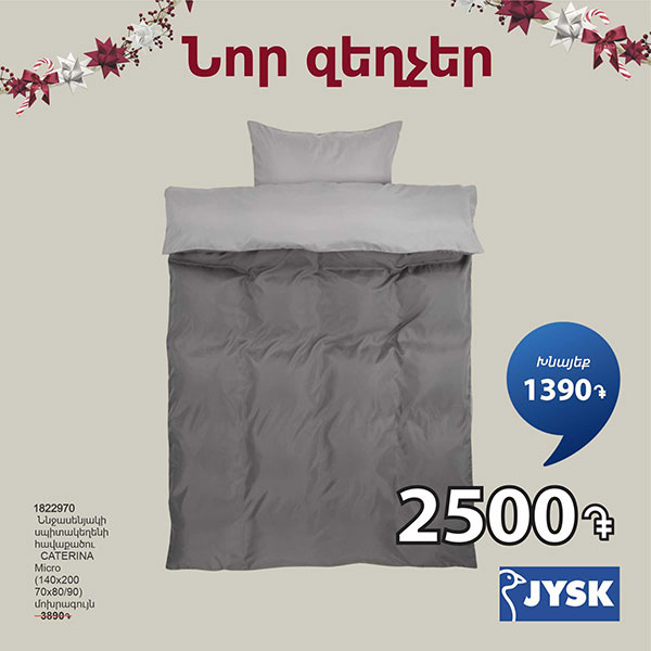 Ննջասենյակի սպիտակեղենի հավաքածու CATERINA Micro (140x200, 70x80/90) մոխրագույն