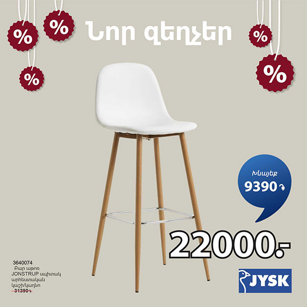 Բար աթոռ JONSTRUP սպիտակ արհեստական կաշի/կաղնու