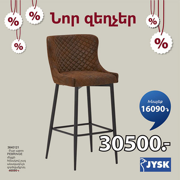 Բար աթոռ PEBRINGE մեջքի հենակով շագանակագույն գործվածք/սև