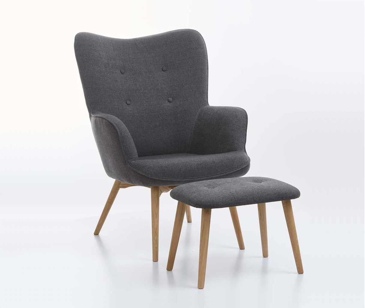 Բազկաթոռ ոտքի աթոռակով SKALBORG մուգ մոխրագույն գործվածք/կաղնու