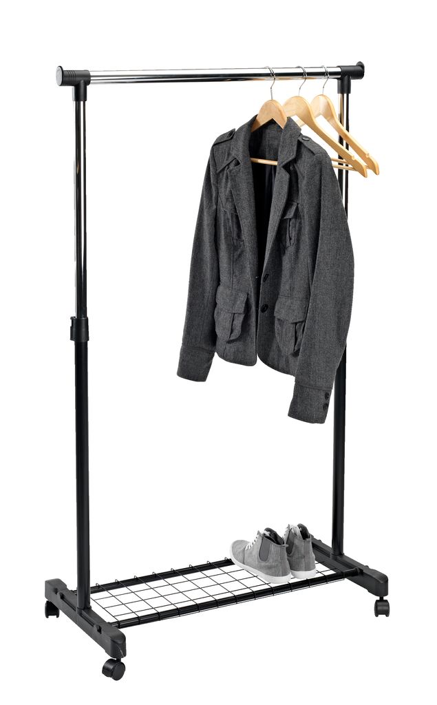 Հագուստի ձողաձև բաց կախիչ GUDME կոշիկների դարակով սև
