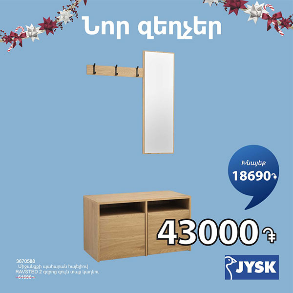 Միջանցքի պահարան հայելիով RAVSTED 2 գզրոց գույն տաք կաղնու