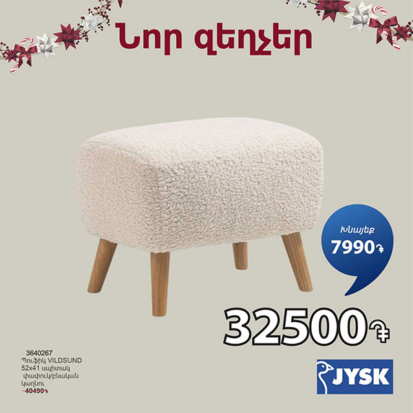 Պուֆիկ VILDSUND 52x41 սպիտակ փափուկ/բնական կաղնու